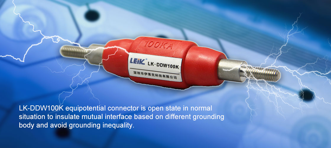 LK-DDW100K equipotential connector is open state in normal situation to insulate mutual interface based on different grounding body and avoid grounding inequality. It can prevent that ground potential beat back damage device.