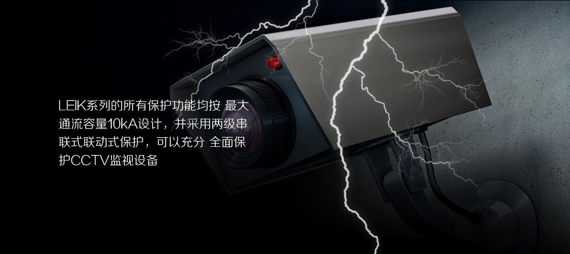 LEIK(雷克)系列多功能CCTV防雷器是依据IEC防雷要求和CCTV监视摄像机的具体应用而设计,适用于交/直流 供电、具备(或不具备)云台控制端口的监视摄像机防雷保护,多功能一体化设计,降低了保护成本 和安装难度、减少安装的占用空间并最大限度的利用等电位保护原理使保护效果大为改善。 LEIK系列的所有保护功能均按 最大通流容量10kA设计,并采用两级串联式联动式保护,可以充分 全面保护CCTV监视设备。