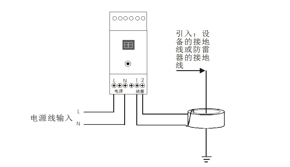 ◆ 端子1、端子2与配套的感应线圈连接,把雷电计数器的感应线圈套在接地线上;